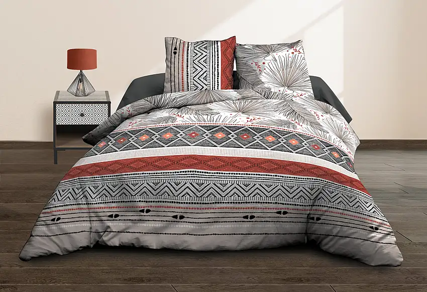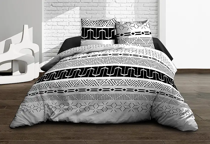 Parure Drap plat + drap-housse 140×190 + 2 T – Pur coton 57 fils – Graphic