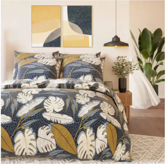 Parure de Couette Imprime Double Face 260×240 cm + 2 Taies d’oreiller 65×65 cm Pastel Foliage