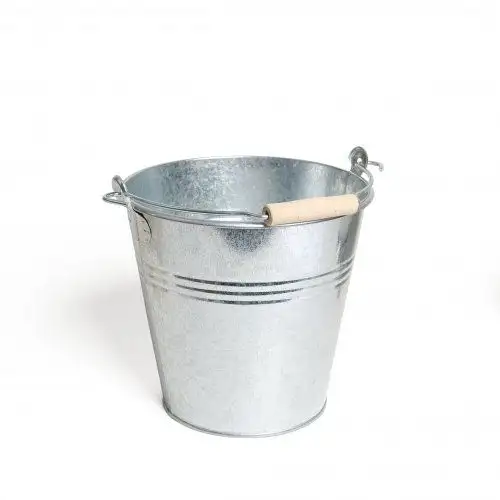 Seau avec poignée en hêtre, zinc, 5 L