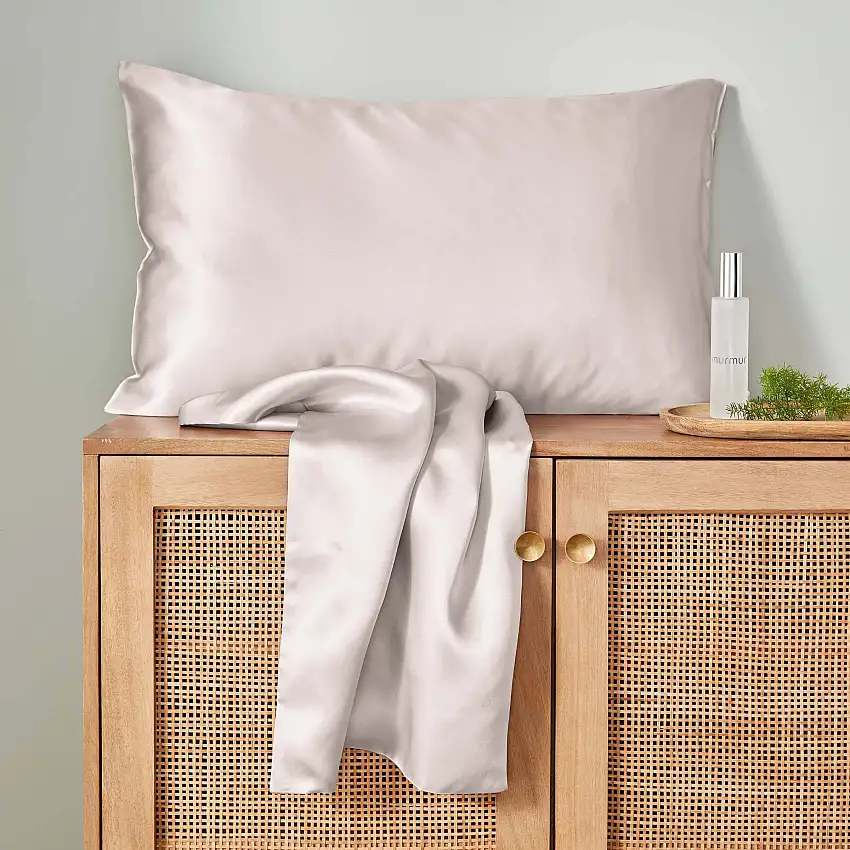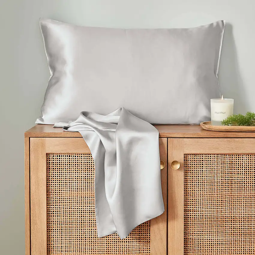 Taie d’oreiller standard en soie, gris nuage