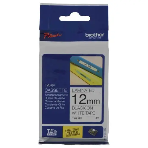 Ruban TZE 8m x 12 mm – BROTHER Tze 231 – texte noir sur fond blanc