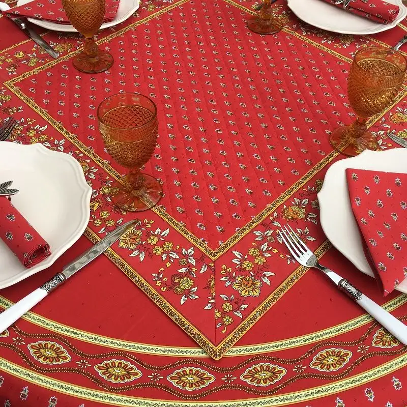 Tapis de table en coton matelassé « Avignon » rouge et jaune
