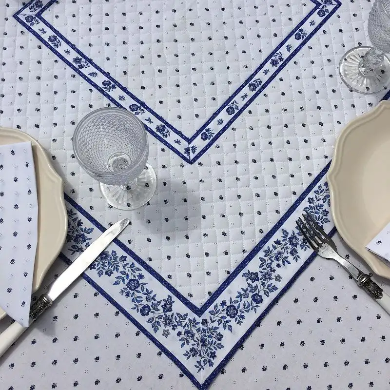 Tapis de table en coton matelassé « Bastide » blanc et bleu