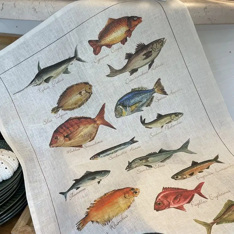 Torchon en lin la mer « Pesci » Tessitura Toscana Telerie
